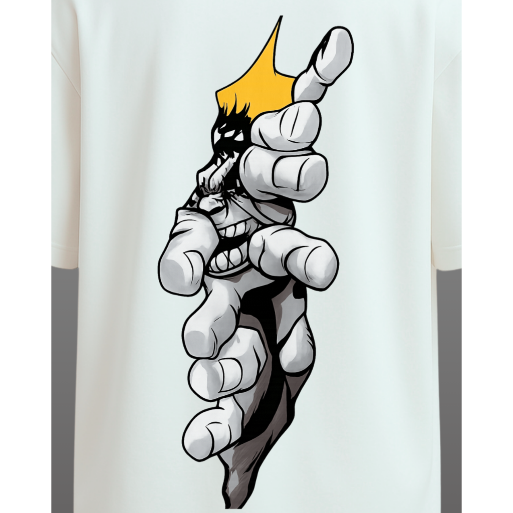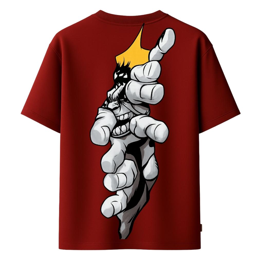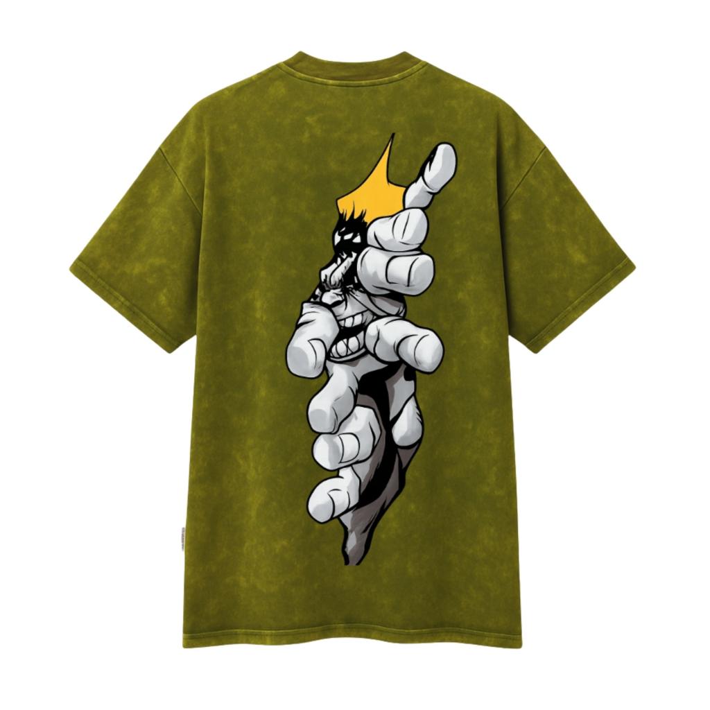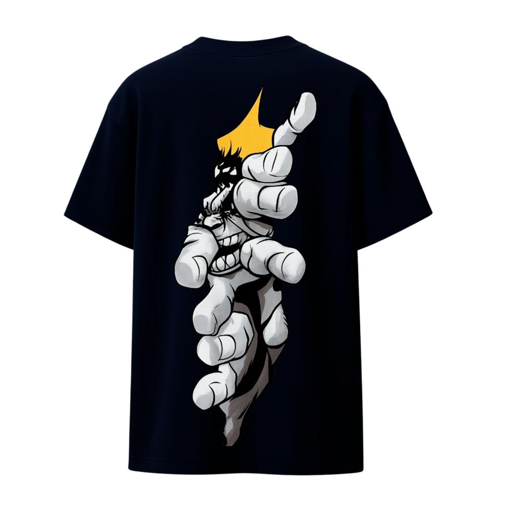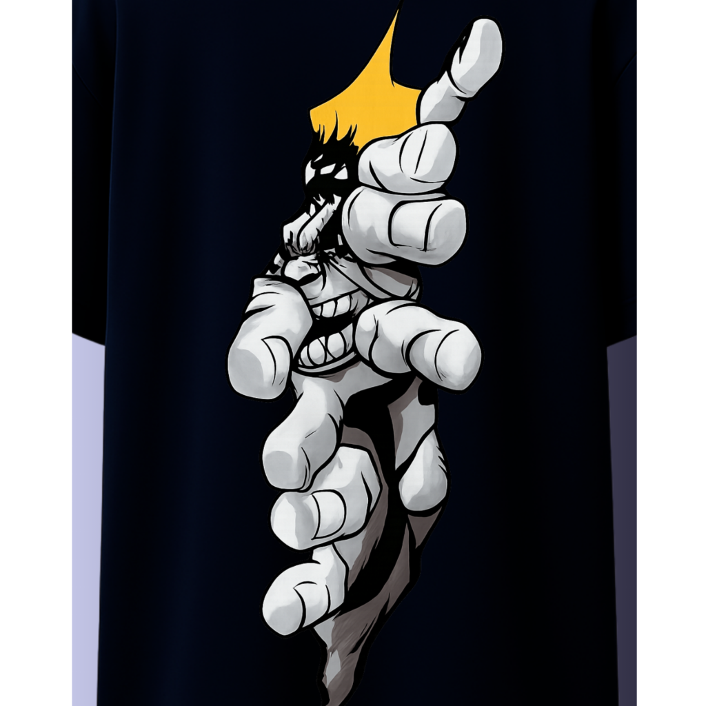 The back features a striking manga-inspired monster fist illustration, bursting with attitude and depth. Every line, shadow, and highlight is printed with high-quality, fade-resistant inks to keep the artwork sharp wash after wash. On the front, the cracked vertical lettering adds a clean streetwear touch without overcrowding the design.