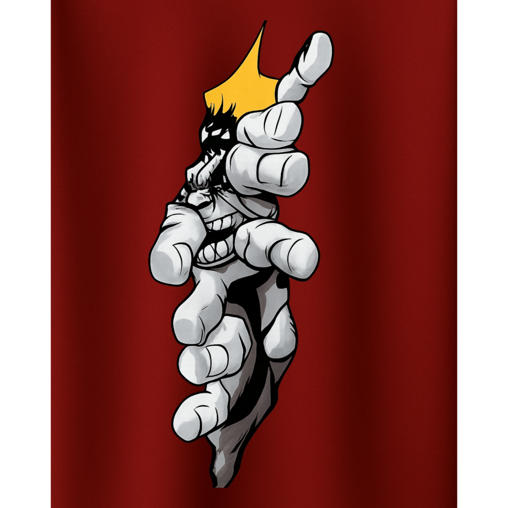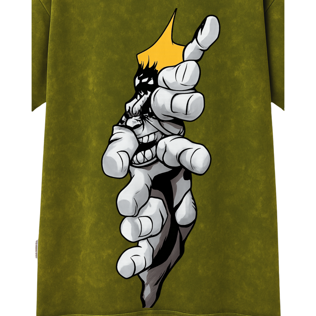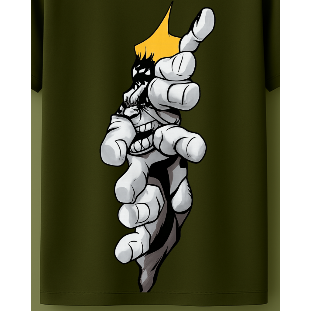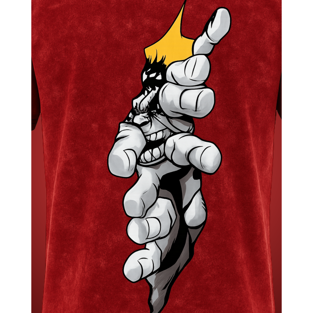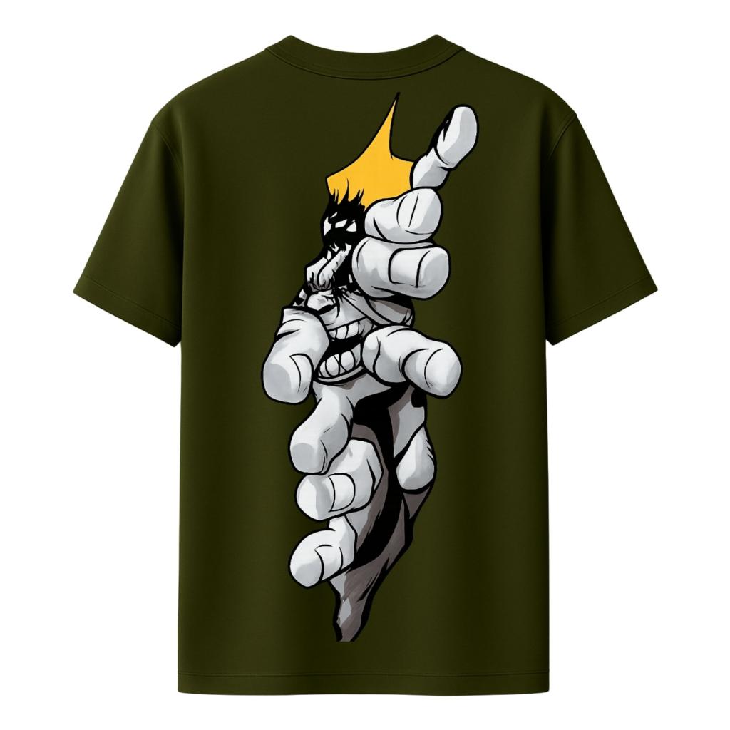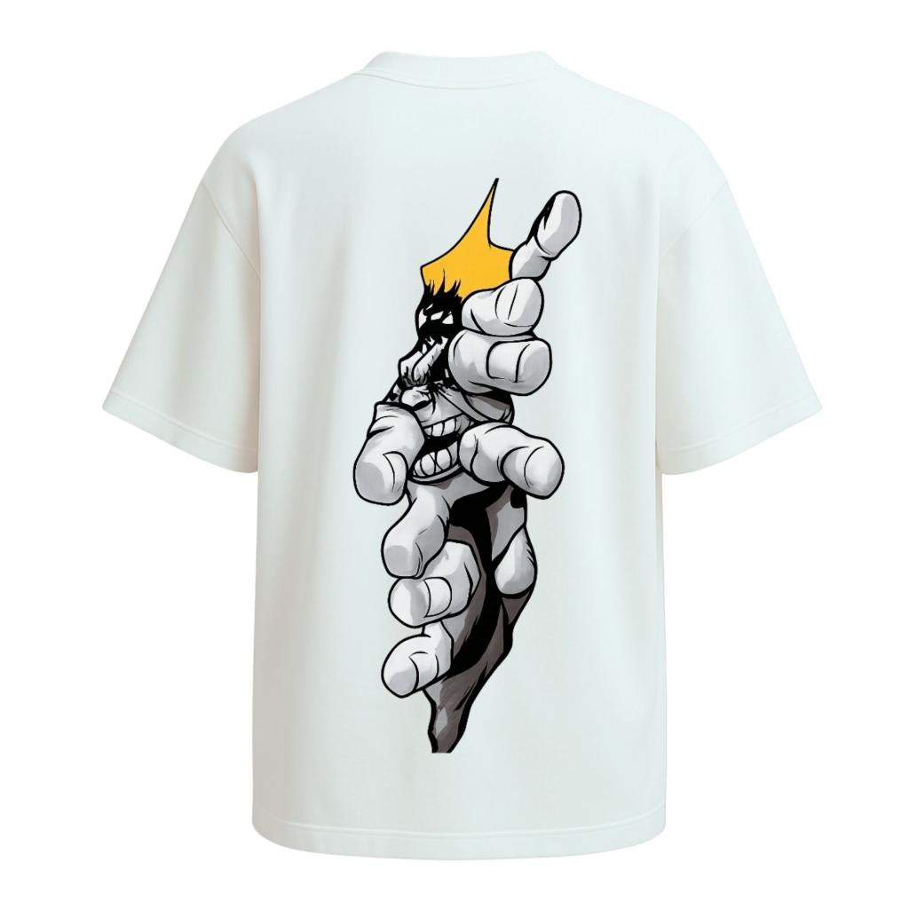 The back features a striking manga-inspired monster fist illustration, bursting with attitude and depth. Every line, shadow, and highlight is printed with high-quality, fade-resistant inks to keep the artwork sharp wash after wash. On the front, the cracked vertical lettering adds a clean streetwear touch without overcrowding the design.
